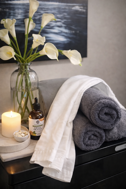 From the moment you arrive, every detail is tailored to help your nervous system unwind. Choose your aromatherapy (Lavender? Eucalyptus? Peppermint? Sweet Orange? Unscented?), your music vibe, warmth level, and more using our Signature Client Comfort Menu. All bodies and backgrounds are welcome here.